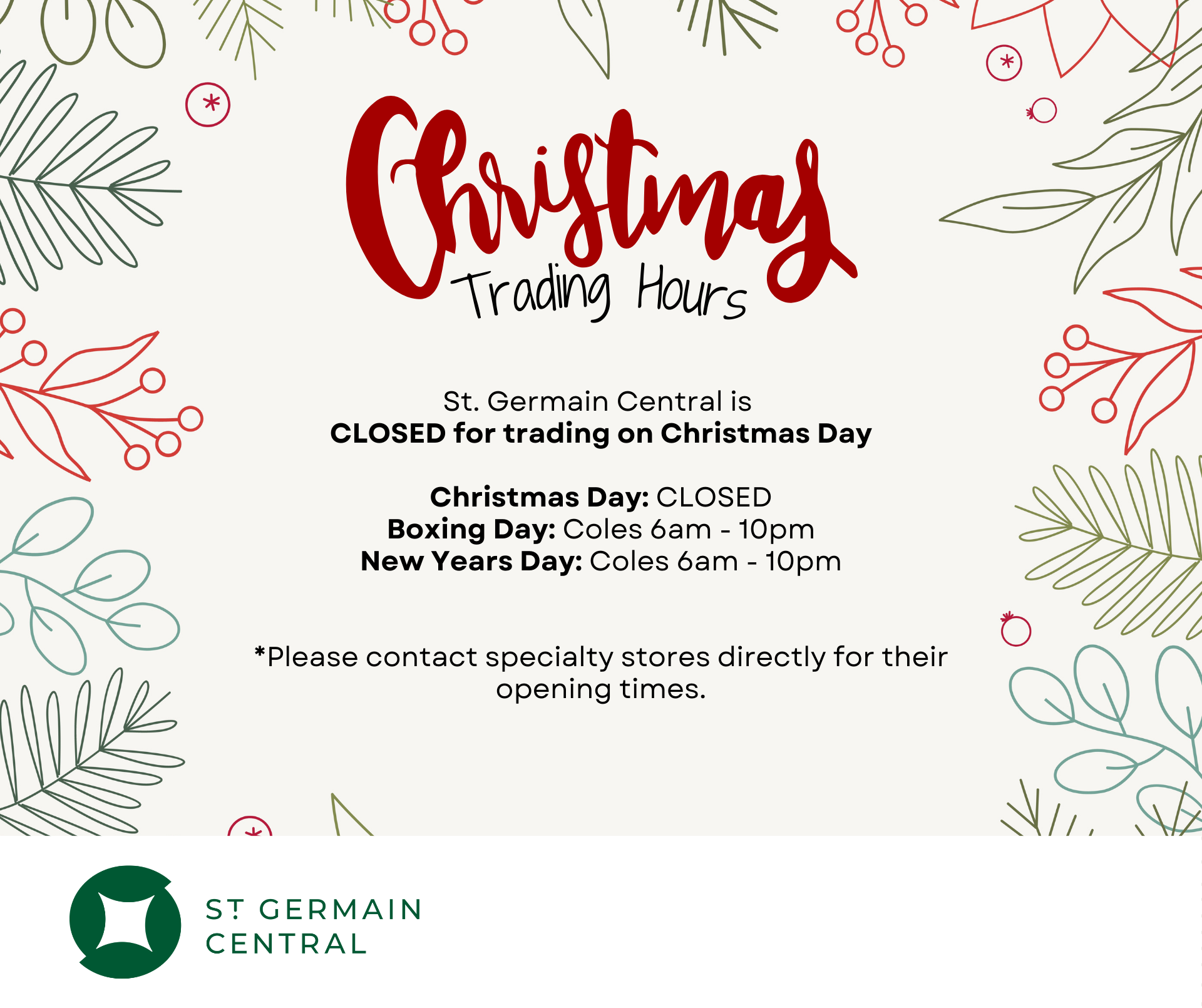 We look forward to welcoming you in-centre for all your festive shopping and New Year essentials at St Germain Central.