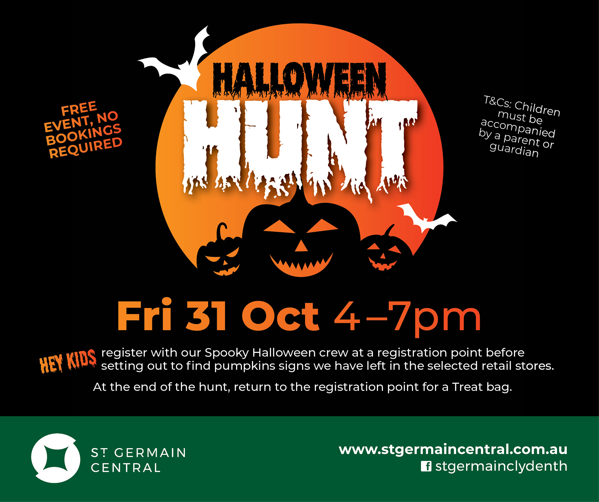 No bookings required β just bring your best costumes and join in the Halloween fun at St Germain Central!