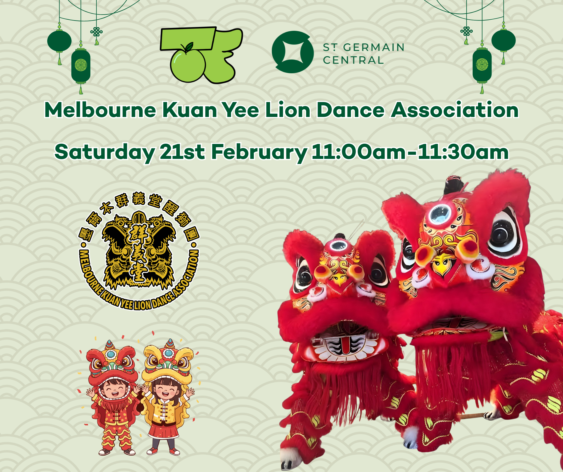 We’re excited to welcome the Melbourne Kuan Yee Lion Dance Association to St Germain Central this Saturday!